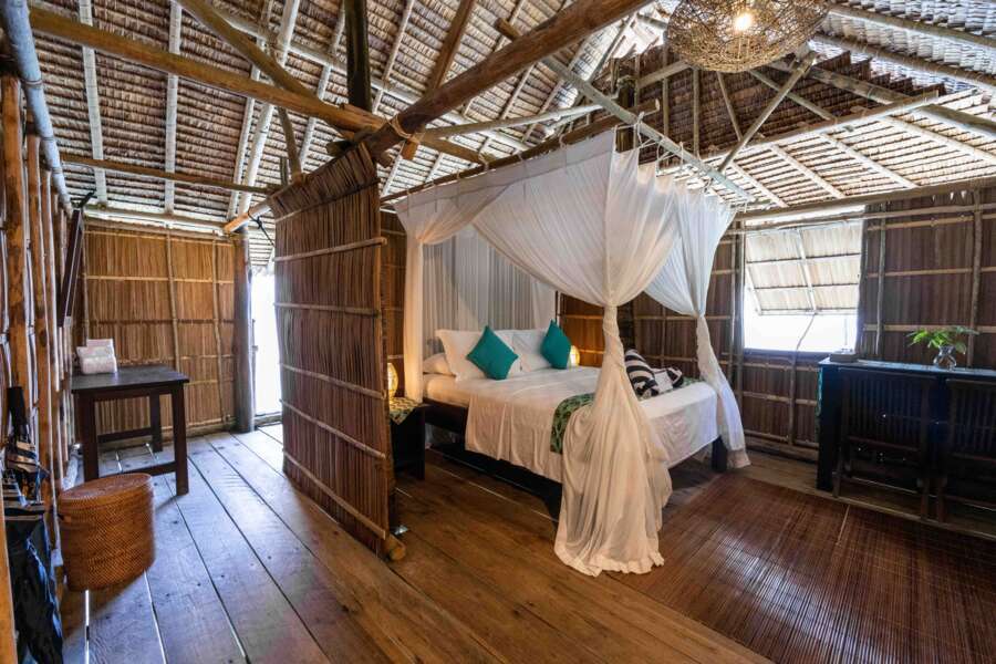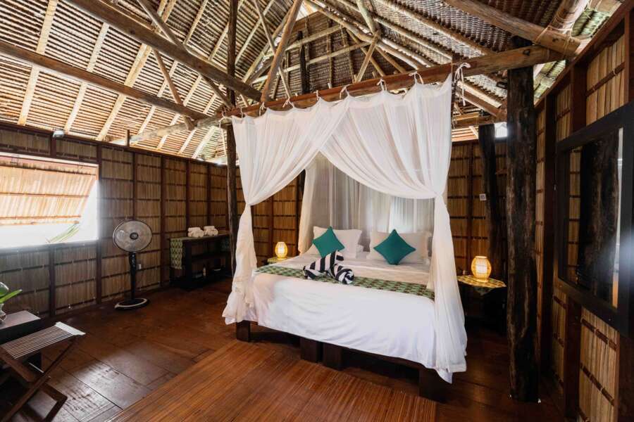 Alle Cottages sind mit aus natürlichen Materialien im landestypischen Stil gefertigt und verfügen über Deckenventilatoren und werden rund um die Uhr mit Strom versorgt.