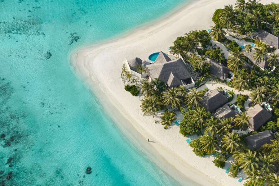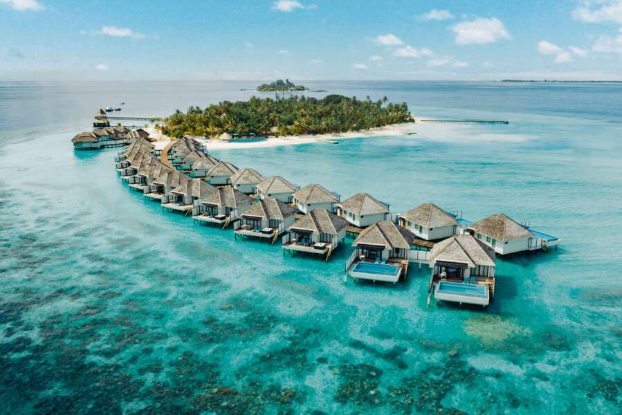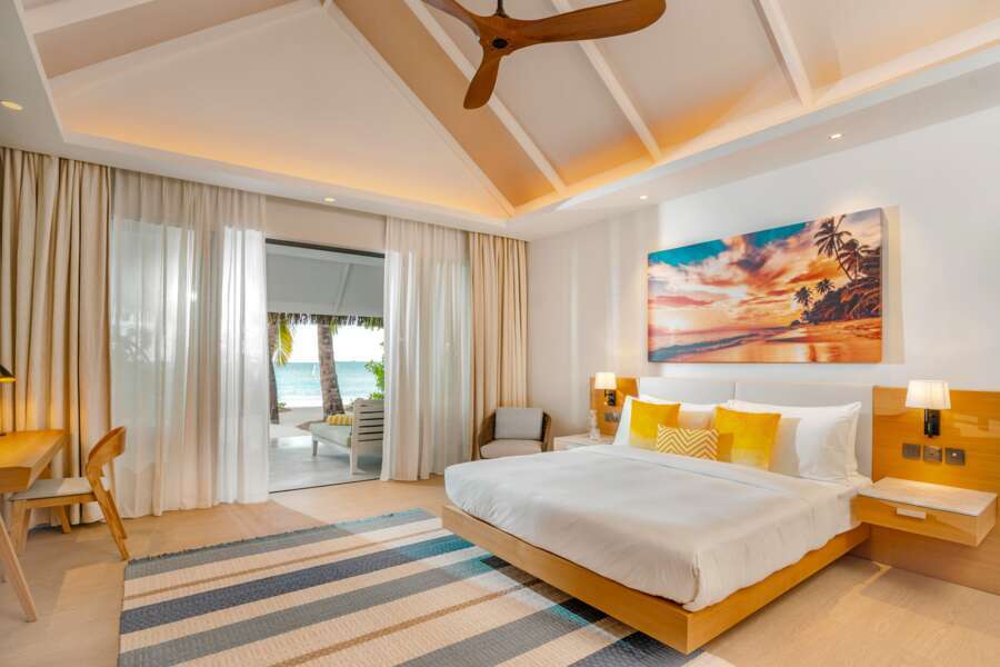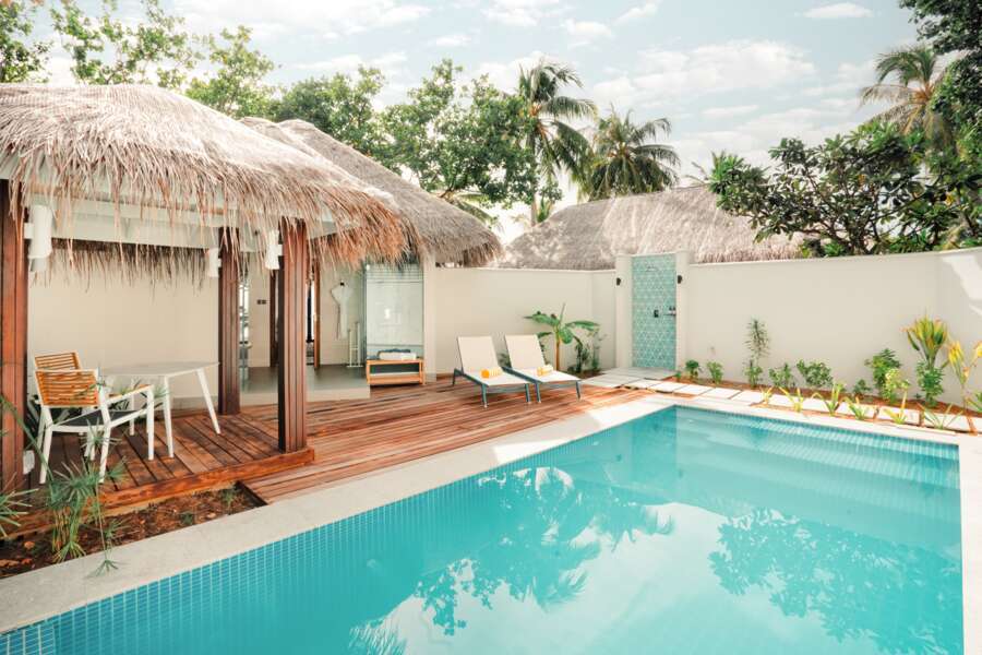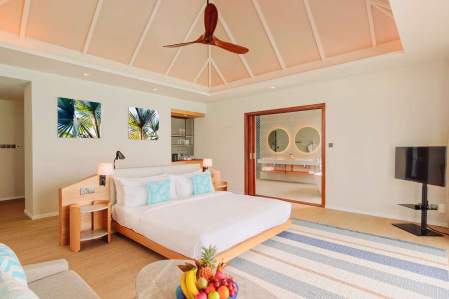 Die 76 Unterkünfte verfügen alle über Klimaanlage, Deckenventilator, Sitzecke, Minibar, Telefon, Safe, TV, Haartrockner sowie Tee-/Kaffeekocher und Nespresso-Maschine. Die 17 Beach Villas (80 m²) liegen einzelstehend oder in Doppeleinheiten direkt am schneeweissen Sandstrand und haben ein halboffenes Badezimmer. Die 18 Sunset Beach Villas (80 m²) sind gleich eingerichtet und liegen auf der Sonnenuntergangsseite. Davon verfügen 8 Villas zusätzlich über einen Jacuzzi im Badezimmer und 4 Villas über einen Pool auf der Terrasse. Die 6 Water Villas (125 m²) sind auf Stelzen in die Lagune gebaut und durch einen Steg mit der Insel verbunden. Sie haben ein geschlossenes Badezimmer mit Dusche und Badewanne sowie direkten Zugang zur Terrasse, von welcher eine Treppe direkt in die Lagune führt. Die 11 Water Villas mit Jacuzzi (125 m²) verfügen zusätzlich über einen Jacuzzi auf der Terrasse. Die 6 Inter-Connected Beach Villas (160 m²) bestehen aus 2 Beach Villas mit Verbindungstüre und sind ideal für Familien. Die 8 Water Villas mit Pool (160 m²) bieten einen eigenen Pool (24 m²) auf der Terrasse. Die 8 Inter-Connected Beach Villas mit Jacuzzi (160 m²) bestehen aus jeweils 2 miteinander verbundenen Sunset Beach Villas mit Jacuzzi. Weiter gibt es eine Beach Pool Villa (160 m²) mit Pool im privaten Garten und eine 2-bedroom Beach Residence mit Pool (250 m²) mit eigenem Pool (32 m²) und Sicht über den Indischen Ozean.